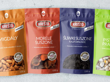 W linii KRESTO SELECT znajdują się specjalnie wyselekcjonowane produkty. Są to orzechy włoskie, w których składzie znajduje się aż 80% połówek, suszona żurawina w postaci całych owoców, bez dodatku cukru, migdały odmiany Nonpareil oraz suszone śliwki kalifornijskie bez dodatku konserwantów.