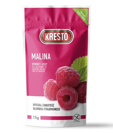 W procesie liofilizacji maliny zostały zamrożone, a następnie pozbawione wody. Dzięki temu można cieszyć się smakiem i aromatem owoców przez długi czas oraz sięgać po nie o dowolnej porze roku. Proces liofilizacji umożliwia zachowanie wysokiej zawartości składników odżywczych – owoce są pożywne, chrupiące i mają intensywny smak oraz aromat. Produkt jest bezglutenowy i nie zawiera dodatku cukru. Do wyprodukowania 100g maliny liofilizowanej zużyto 0,7 kg maliny świeżej.